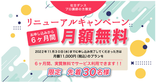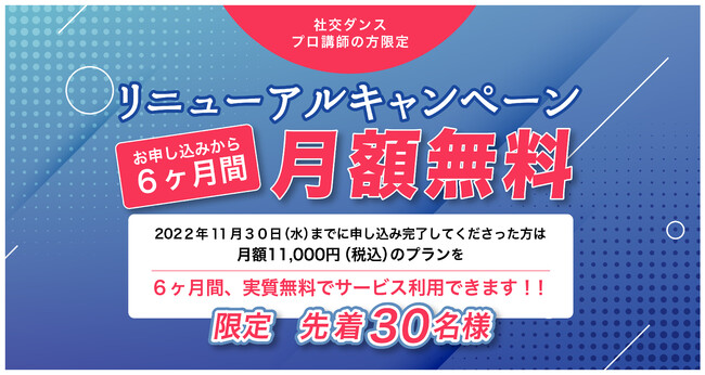 キャンペーン内容:2022年11月30日(水)までに申し込みを完了してくださった方は月額11,000円(税込)のプランをお申し込みから6ヶ月間、実質無料でサービス利用できます。