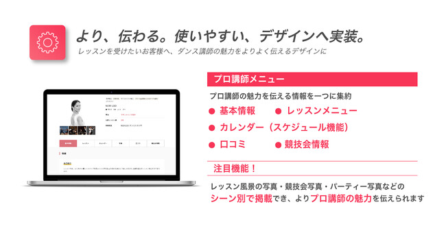 レッスンを受けたいお客様へ、ダンス講師の魅力をもっと伝えるために、プロフィール画面を大幅に変更しました。