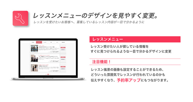 また、レッスン風景の画像も設定することができるため、どういった雰囲気でレッスンが行われているのかも伝えやすくなりました。