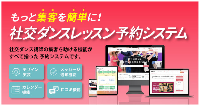 NEW LOD(ニューエルオーディー)では社交ダンス業界に特化したレッスン予約シスステムを月額11,000円(税込)で提供しています。