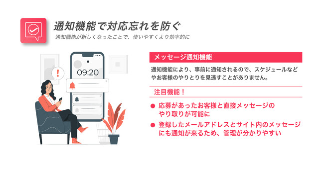 メッセージによる通知機能の強化による個人情報のやりとりの省略
