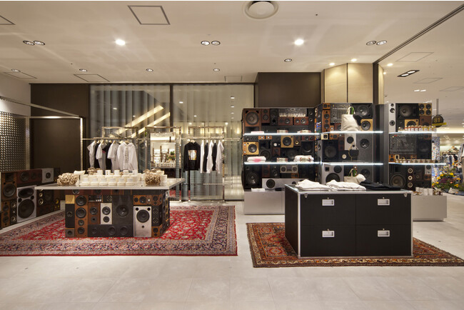 音楽からのインスピレーションが随所に散りばめられた店内には、従来の照明よりもエネルギー効率の高いLED照明や、スピーカーなどの音響資材をアップサイクルしたウォール、ステンレススチール製のカウンターとウェア用のラックなどが用いられています。モダンな要素を取り入れた空間には、ステラ マッカートニーのアイコニックなレディ トゥ ウェアやライフスタイルグッズなど、ここでしか手に入らないオリジナルアイテムが並びます。さらに、ブランドの価値観や理念に沿って製作されるアイテムのほか、厳選されたコレクターズアイテムも順次展開予定です。