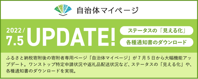株式会社シフトセブンコンサルティング(以下、シフトセブン、本社:福岡県福岡市中央区、代表取締役:井本憲史)は、2022年5月31日から提供を開始した自治体別ふるさと納税寄附後の寄附者専用ページ「自治体マイページ」の機能を大幅にアップデート、7月5日から新機能をリリースします。