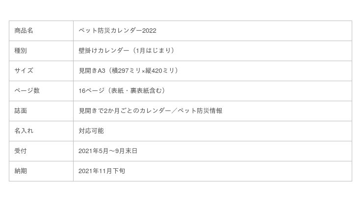 現在受付中の2022年版からは、より企業の皆様が参加しやすいように、企業名を入れた、名入れカレンダーを作成できるようになりました。年末のノベルティとしてカレンダーを作っていた企業であれば、もともと支出していた費用をペット防災に充てることができるわけですから、参加のハードルをぐっと下げることができるのではないかと考えています。