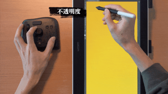 『TourBox』には、各種ボタンのほか、「ノブ」や「スクロール」、「ダイヤル」などの回転させて操作するコントローラーが搭載されております。それらを使うことで、画像の拡大縮小、ブラシの太さ調節、パラメーターの細かな数値変更などが直感的に行えます。通常のキーボードでは不可能なアナログ操作を実現。またマウスやタブレットと組み合わせて使うこともでき、このおかげで制作時の効率を高めて、クリエイティビティを向上させます。