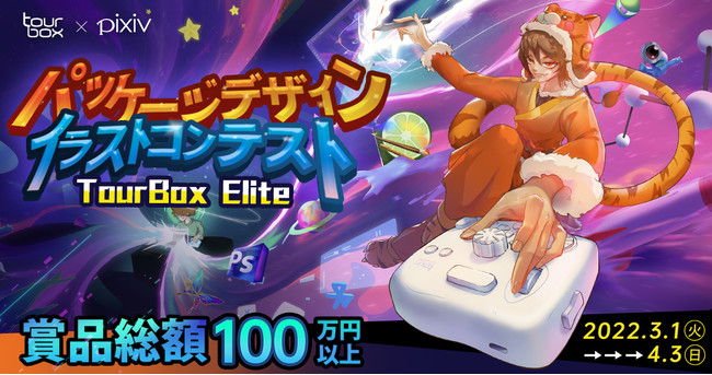 クリエイターに大人気の左手デバイス『TourBox』の開発・販売を手がけるTourBox Tech社は、新型『TourBox Elite』の日本発表にあわせ、イラストコミュニケーションサービス「Pixiv」とコラボレーションを開催。『TourBox Elite』を盛り込んで描いたパッケージ用イラストを募集いたします。優秀作品には、賞金などを進呈。賞品総額100万円以上の大規模なコンテストとなっています。