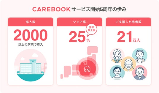 株式会社3Sunny(本社:東京都中央区、代表取締役:加藤大典)は、提供する医療機関向け業務支援SaaS「CAREBOOK(ケアブック)」が、サービス開始から5周年を迎えたことをお知らせいたします。