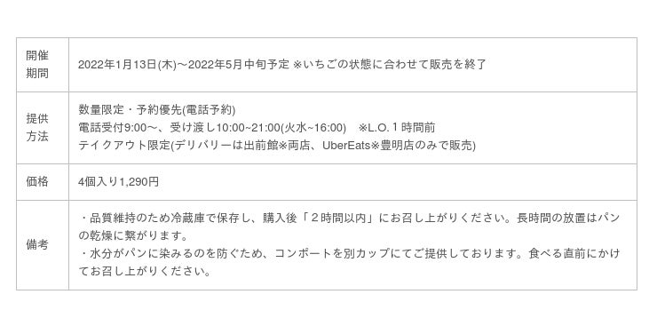 苺サンド「こぼれ苺サンドイッチ」が今年も登場します。