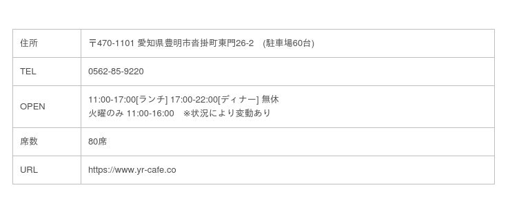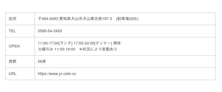 2、YR CAFE by恵比寿楽園テーブル[愛知県犬山市]