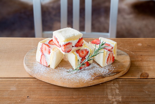 契約農家直送の完熟苺をふんだんに使用したケーキのようなサンドイッチ。