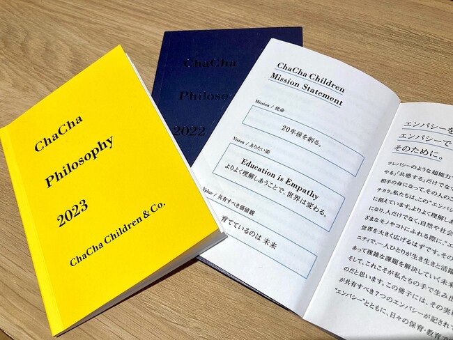 「保育・教育に『これでよい』という正解はありません。だからといって『何をしてもよい』ともいえません。さらに、私たちが掲げる”エンパシー”という概念には、具体的なマニュアルやルールはありません。それは、常に追い求めていくものといえます。これまでにChaChaが積み重ねてきた知恵や経験をもとに、これからを築いていく。そのための確かな拠り所としてほしいのが、『ChaChaフィロソフィ』です。内容については、ChaChaがこれまでも、そして今も大切にしている想いや考えを中心にしています。しかし、本当に大切なのは、ここから何を生み出していくか。子どもたちと向き合いながら、そして職員自身の想いや考え、行動をこのフィロソフィにプラスしながら、職員たちによりよい保育・教育の創造に参加してほしいという想いから、フィロソフィを策定しました」。