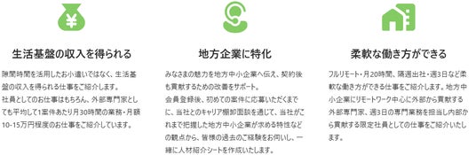 リモート・週3日・業務委託契約等、柔軟な働き方の人材を受け入れる地方企業との出会いをご提供いたします。これまでの経験・スキルを活かして、お客様や仲間への貢献を肌で実感し、新たな居場所を見つけてください。