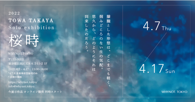 WHYNOT.TOKYOでは、2022年4月7日[木]から4月17日[日]までの期間、美術家 高屋永遠の個展「桜時」を開催致します。