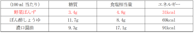 <他調味料との比較>(参照:日本食品標準成分表2020版(八訂))