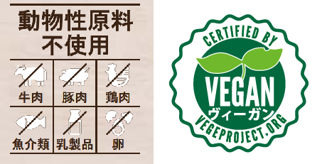 NPO法人ベジプロジェクトジャパンが定めるヴィーガン認証を取得しています。