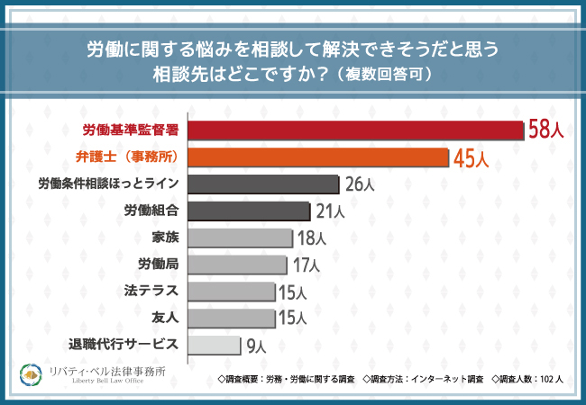 信頼できる相談先の第1位は『労働基準監督署』第2位は『弁護士(事務所)』