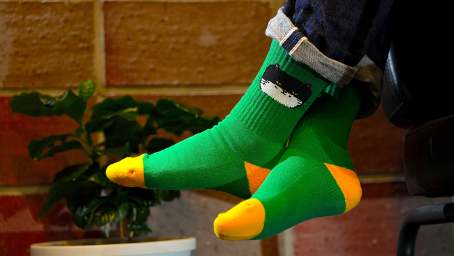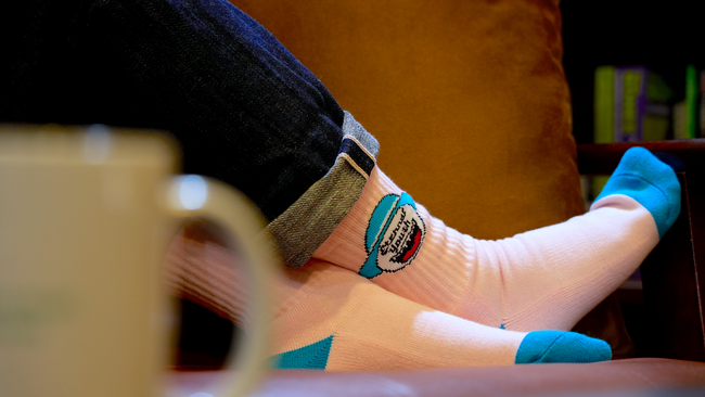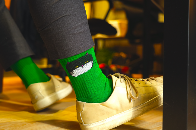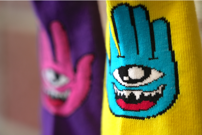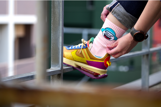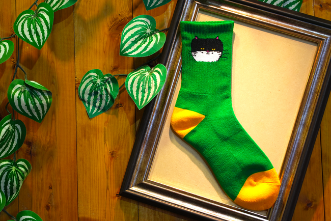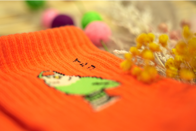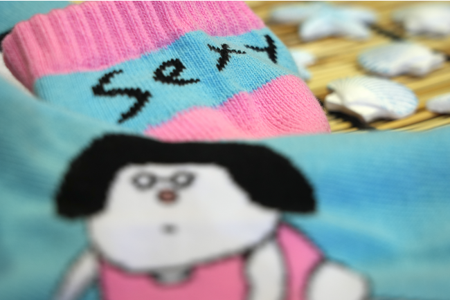 記念すべき第一弾の商品は、ショップオリジナルソックス2アイテムと、福岡でテレビ番組の構成作家として活躍する傍らイラストを制作しているクリエイター[SKIPちゃん]とのコラボレーションソックス1アイテム。