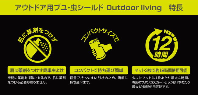 「アウトドア用ブユ・虫シールド Outdoor living」は肌に薬剤を直接つけずに屋外で虫よけができる商品です。