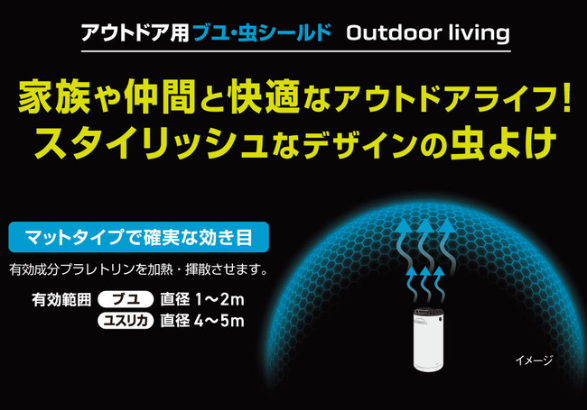 住化エンバイロメンタルサイエンス株式会社が2020年より販売している「アウトドア用ブユ・虫シールド」に新たなラインアップである「Outdoor living (アウトドアリビング)」が追加されます。