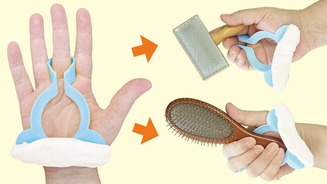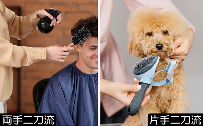 人間のヘアを整えるスタイリストは、両手に道具を持って作業します。しかし、ペットのケアでは、ペットが不意に動き出すことがあるため、片手をペットの体に添えて作業します。このため、道具を取り扱える手は残りの片手しかなく、複数の道具を同時に持つことができません。このため、道具を持ち替える動作が頻発して、ストレスになる問題がありました。