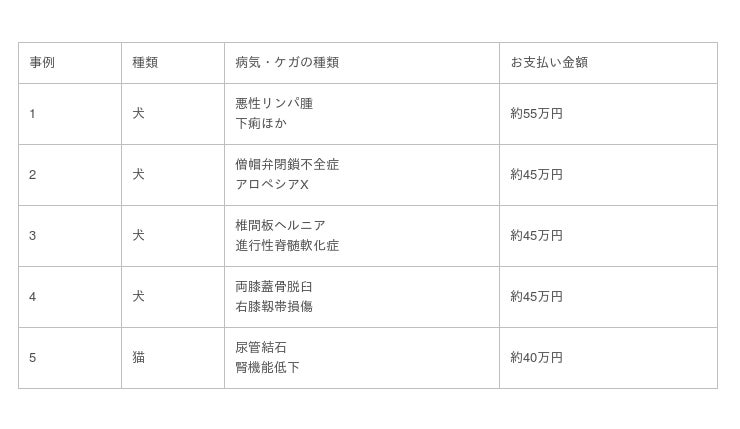 ※上記の数値は、PS保険加入者さまから請求されたものであり、ペットメディカルサポートが補償する範囲を示すものではありません。また、平均や水準を示すものでもありません。