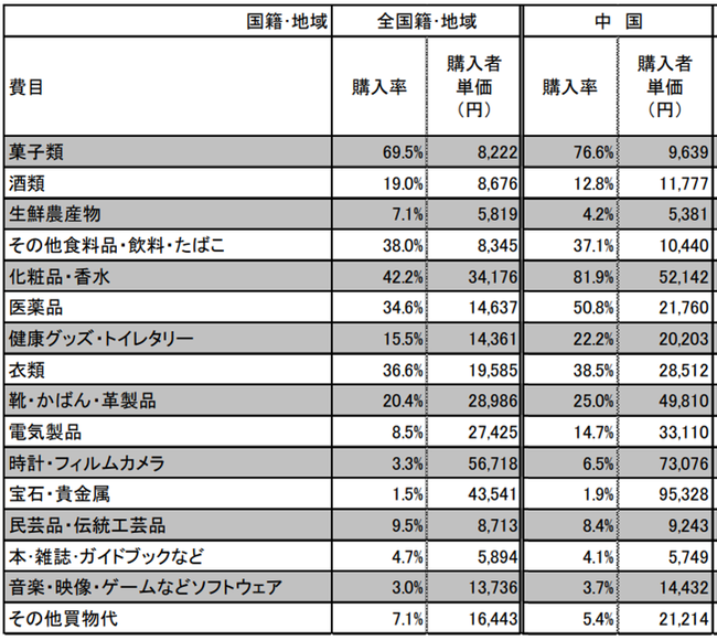 日本への旅行目的としては、95%以上の人が観光レジャー体験を選択、また、80%以上の人が買い物も選択しており、コロナ前と変わらず買い物は日本への旅行目的の一つと言える。