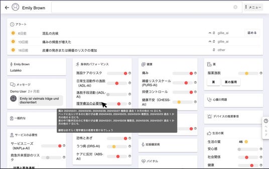 このような声を受けて、ケアビューアーは従来の感覚的判断から客観的データに基づく判断へのニーズが高まっていることに気づき、ケアの質を標準化するための機能追加を検討してきた。フィンランドでは、高齢者の健康状態に関する介護記録を基にした客観的データの提供が既に実証され、製品化も実現していることを知り、同国のGillie.AI社との連携協議を約5年前から重ねてきた。