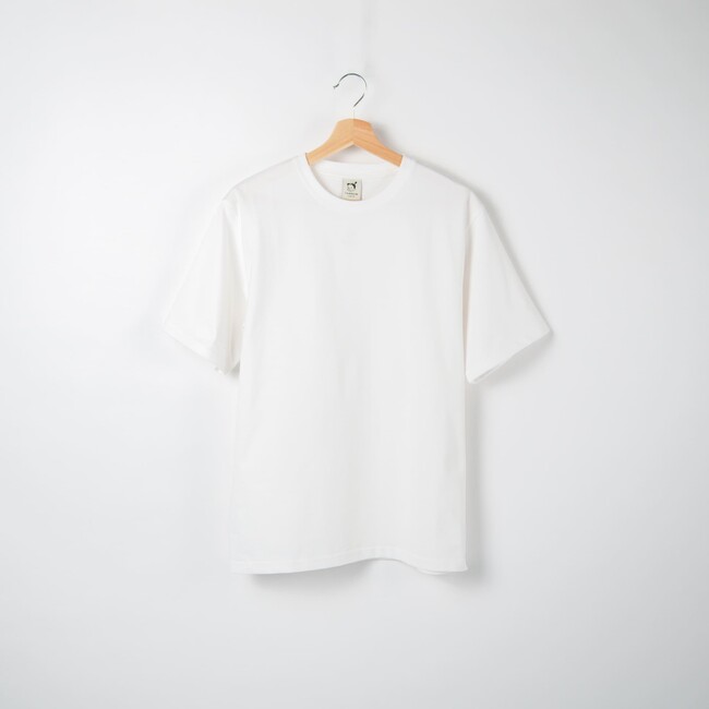 高密度で適度な厚みを持ちながら、品のよい光沢を兼ね備えた国産天竺素材を使用しています。通気性・吸汗性・伸縮性に優れ、ほどよいドロップショルダーと、絶妙なボックスシルエットで、カジュアルになりすぎない一枚です。インナー使いとしての着回しもよく、フルシーズン着用できます。今回から、従来のホワイトよりワントーン明るいSARASHI(新色)も加わります。