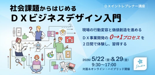 株式会社エンパブリック(本社:東京都文京区、代表取締役:広石拓司)は、企業の事業部でDX推進を任された新任担当者を主対象に、「社会課題からはじめるDXビジネスデザイン入門(DXイントレプレナー講座)」を、2026年5月22日(金)・29日(金)の2日間、ハイブリッド(会場+オンライン)で開講します。