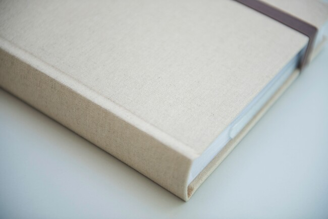 アルバムの外装には、寝具や衣類など、古くから生活のさまざまな場所で使われている天然素材のリネンを使用。