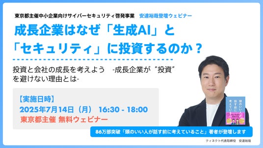 本セミナーでは、安達が経営者として実践してきた「生成AI」や「サイバーセキュリティ」への投資戦略を通じて、企業の“成長に直結するお金の使い方”を解説します。