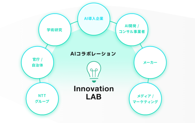 「Innovation LAB」は、我が国の社会・産業にイノベーションをもたらすAI分野の企業/団体が集い、各社がもつ多様な強みを融合しながら、研究開発やマーケティング活動において"共創"するためのパートナープログラムです。