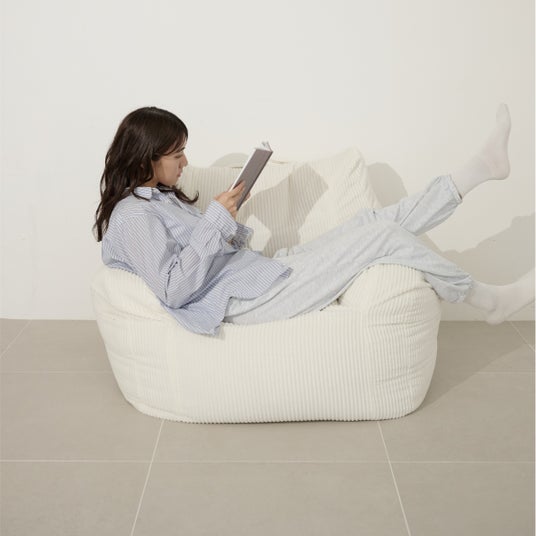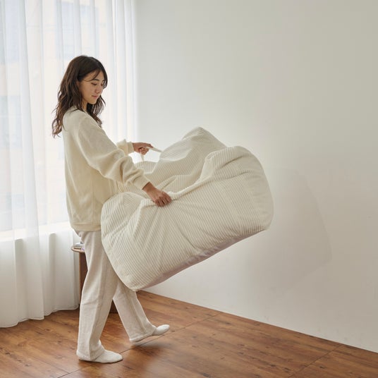 ビーズソファは約5.5kgと軽いので女性1人でも楽に持ち運びできます。コンパクトで気軽に移動できるからレイアウトも自由自在で、小さな部屋での楽しみ方が広がります。
