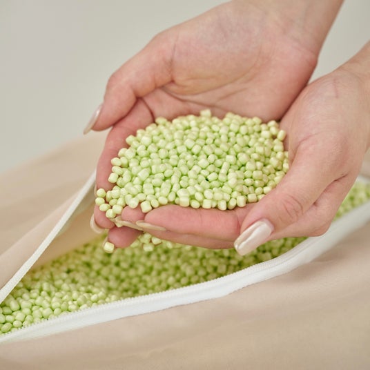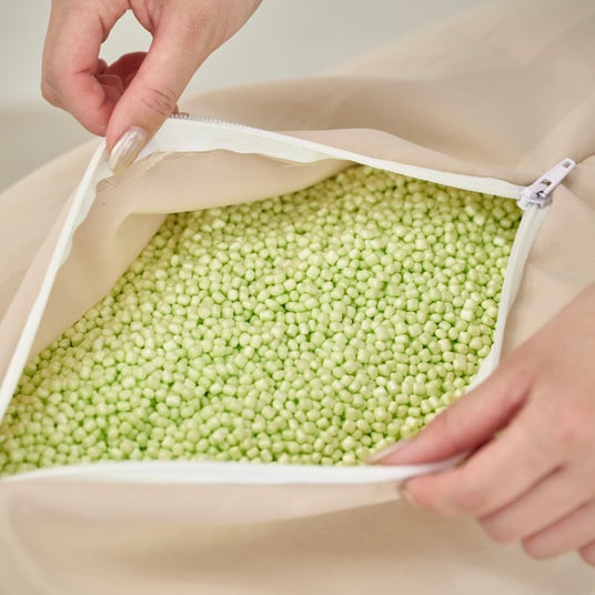 LOOSYのソファには、長く使うことができ、地球にやさしい再生プラスチックを使用したリサイクル素材であるEPPビーズを使用しています。一般的に使われるEPSビーズよりもへたりにくいのが特徴です。