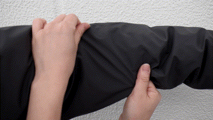 ダウンジャケットとダウンマフラーにはダウン特有の静電気防止の為に、『静電気防止テープ』を内部に縫い付けて静電気の発生を軽減させています。