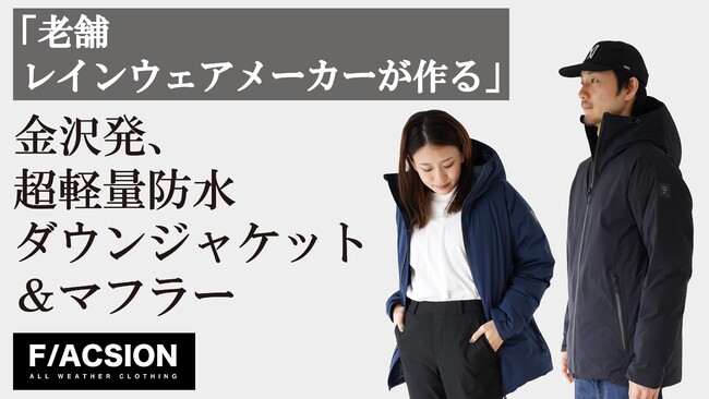 創業100年を超える老舗レインウェアメーカーが今まで培ってきたノウハウと世界トップクラスの技術力で「超軽量防水ダウンジャケット&ダウンマフラー」を開発しました。