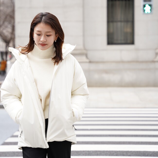※モデル身長165cm:ダウンジャケット オフホワイト Sサイズ着用