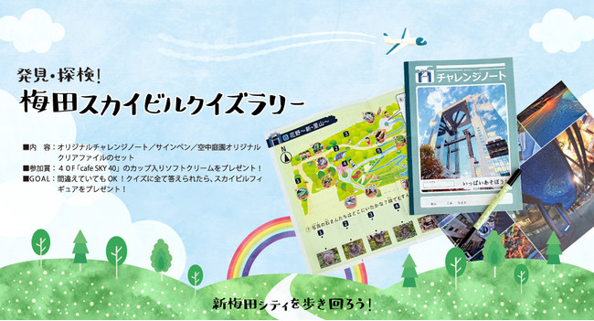 チャレンジノートの中には、ワクワクがいっぱいのクイズがちりばめられており、お子様と敷地内を散策しながら新梅田シティを丸ごと楽しむことができるコンテンツです。