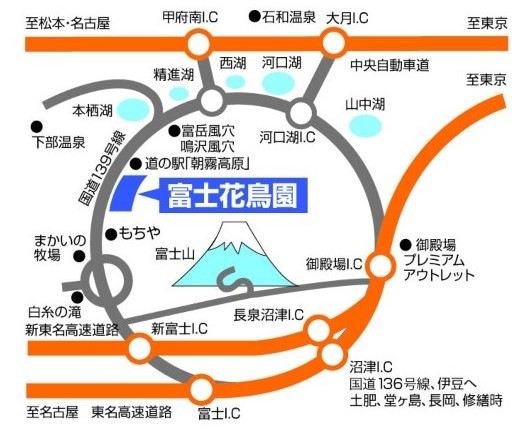 アクセス: 富士方面から東名富士インターより約45分 新東名 新富士インターより約45分。富士五湖方面から中央道河口湖インターより約40分