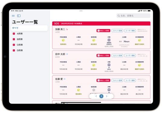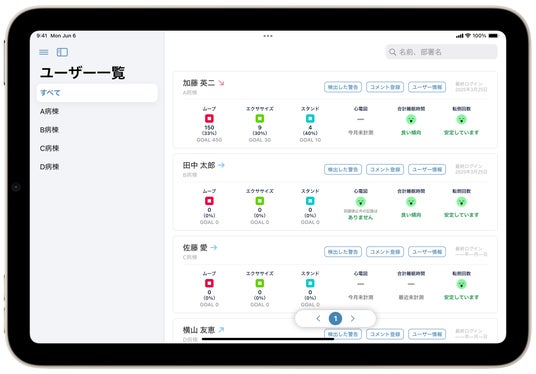 多数のUI・UXデザインを手がけてきたアツラエのクリエイティブチームが監修した、洗練されたインターフェースをiPadのタッチ操作に最適化。これにより、ヘルスケアデータやアラートなど、ユーザー情報をダッシュボードで直感的かつスムーズに操作・確認することが可能になりました。