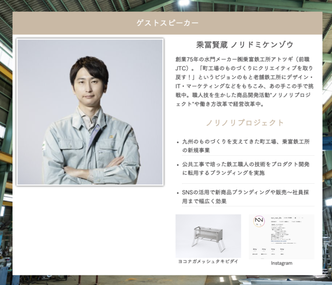 「鉄工職人」を「メタルクリエイター」としてブランディングし、採用活動だけでなく、それまでの企業風土や組織体制にも少しづつ変革を起こしてきた事例として、SNS活用がどう新規事業に貢献してきたかを中心テーマにお話いただきます。