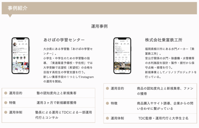 実は、ノリノリプロジェクトの公式instagram「ノリノリライフ」はTDCによる運用代行に加え、現役大学生の2名が運用しています。