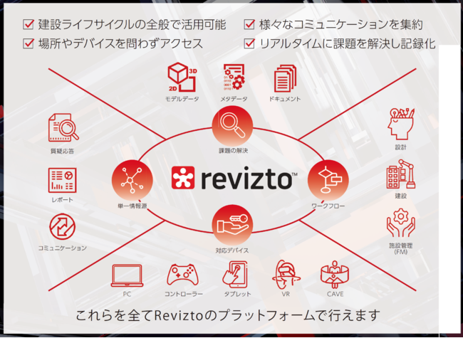 約150か国で数十万人以上の技術者に活用されるReviztoは、BIM/CIM検証、関係者間の共同作業・コミュニケーションの負担を大きく軽減し、建設業界のQCDSE(品質・コスト・工期・安全・環境)実務に役立てていただいています。2020年11月に日本での提供開始以降、日本においてもサービスの有用性を実感してまいりました。導入ハードルが下がるこの機会に、どこからでも2D/3Dを確認・検証し、建設案件のBIM活用をシンプルかつ効果的に進められる本サービスをご検討ください。3月7日(火)にコンストテック(株)代表 石川亮太より、BIM加速化事業の全体像、Revizto概要についてオンライン説明会でお話しさせていただきます。参加者の方からのご質問にお答えいたしますので、ぜひご参加ください。https://revizto.jp(Revizto 公式HP)