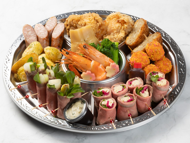 人気商品の焼肉屋のから揚げ(醤油・塩)や黒毛和牛×黒豚の黄金比メンチカツも入った豪華なオードブルをお楽しみいただけます。