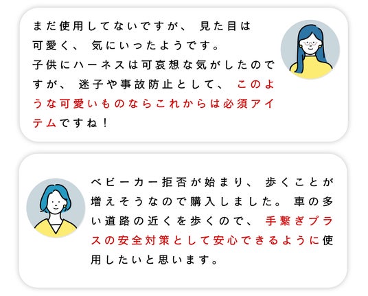 度々話題となるハーネス紐ですが、実際に使用した方々からは使いやすさ・見た目の可愛さをお褒めいただいております。