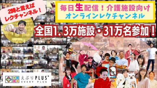2014年~介護施設向けのレクリエーションサービスを展開していたエブリ・プラスは「コロナ禍でも楽しい毎日を過ごしてほしい」という想いでzoom等のツールを利用したオンラインレクリエーションを全国の介護施設向けに実施してきました。2020年3月~オンラインレクサービスの開発を行ってきてから、現在の累計参加施設数:約13,743施設、累計参加者:約311,005人になりました。