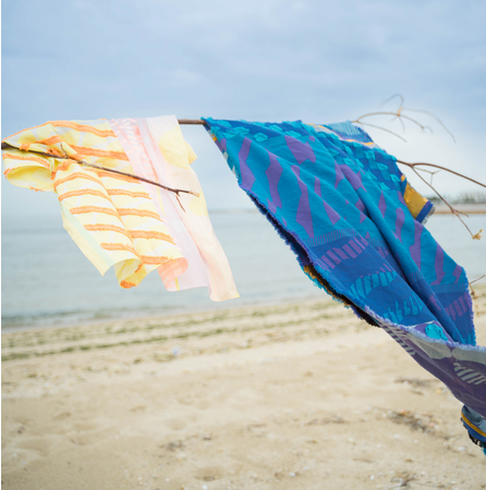 「海は全ての生命の源であり、本能的に懐かしさを感じます。太陽や波の動き、潮の香り、そして生き物たちの存在など、ふわりとした記憶を振り返りながら、心地よい感覚を拾い集めました。どこかノスタルジーを感じて、心がトリップするような色柄やテクスチャーを通して。昔に戻るような安心感と海辺の楽しさをPOLSの新たな物語として伝えていきたいと思います。」(テキスタイルデザイナー梶原加奈子氏)