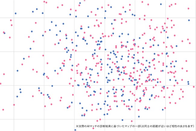 Tカードのデータをもとに衣食住といったライフスタイルや価値観を予測し、モデルデータを機械学習させることで2者間の相性を予測するAIによるマッチングアルゴリズムを開発しました。アルゴリズム開発にあたっては、お客さまの個人情報およびプライバシーの保護を最優先事項とし、Tカードのデータを統計的に分析した傾向データを使用しています。