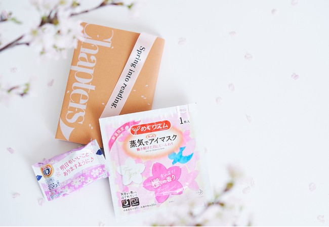 3月は、チャプターズオリジナルのブックカバーと栞も限定の春仕様にてご用意しております。ギフティングパートナーには花王様をお迎えし、「バブ」「めぐりズム 蒸気でホットアイマスク」のさくらの香りも同封、チャプターズと一緒に春の訪れを感じて頂けたらと思います。(3月「春一番」の選書4作品は江別蔦屋書店でもご購入可能、ご購入者様にはめぐリズム 蒸気でホットアイマスクも店頭にてお渡しします。限定のブックカバーとバブはオンラインのチャプターズ書店のみの展開となります)。