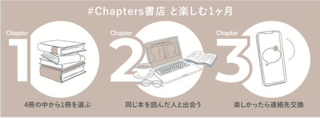 チャプターズは、毎月季節性やトレンドを踏まえて設定される独自の選書テーマの元、現役書店員が厳選した文庫本4冊のみを月替りで取り扱うサブスクリプション型のオンライン書店です。